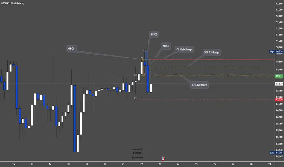2. Shows HTF Structure - Marks High Timeframe support/resistance zones (C1 ranges).