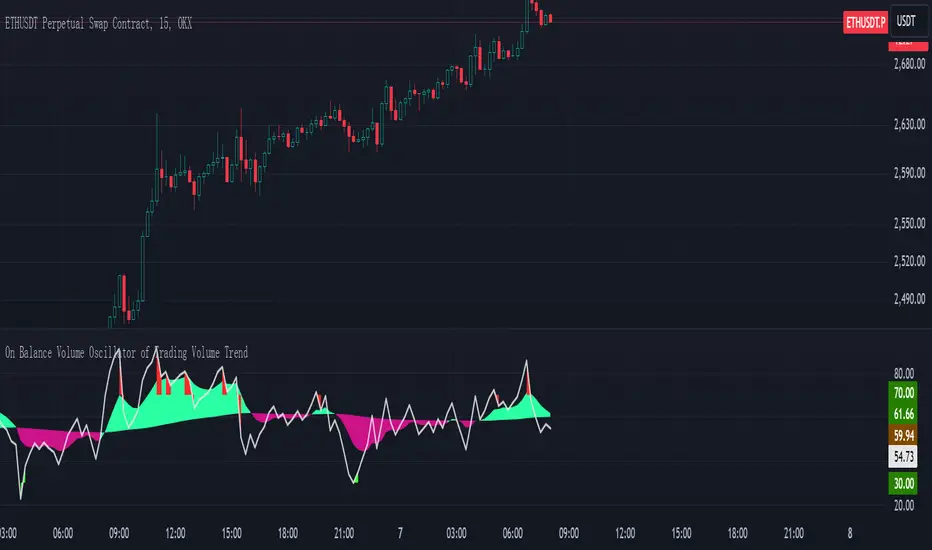 This indicator, the "On Balance Volume Oscillator of Trading Volume Trend," is a technical analysis tool designed to provide insights into market momentum and potential trend reversals by combining the On Balance Volume (OBV) and Relative Strength Index (RSI) indicators.