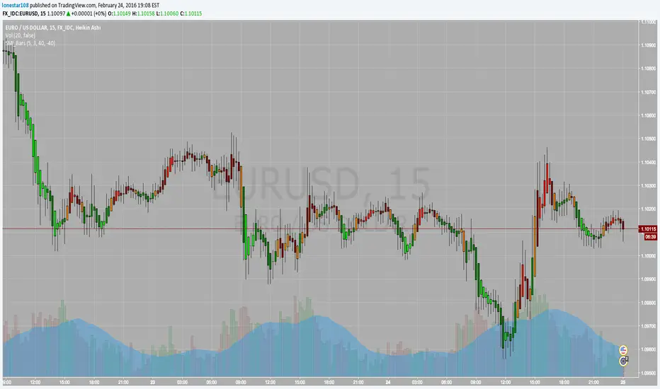 Uses SMI (Stochastic Momentum Index) to set bar colors: