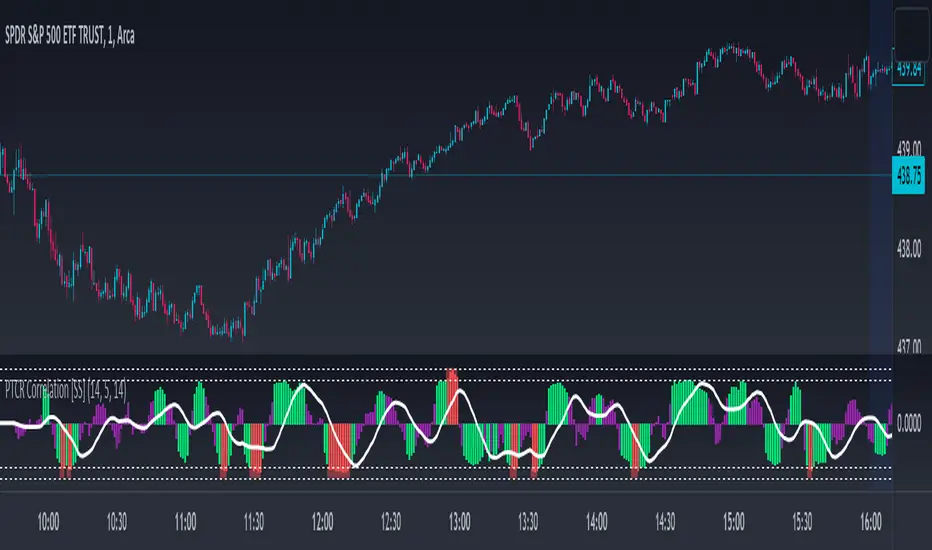 As I have said, the indicator is very simple. It pulls the data from the ticker PCC and runs a correlation assessment against whichever ticker you are on.