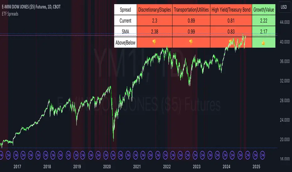 This script provides a visual representation of various financial spreads along with their Simple Moving Averages (SMA) in a table format overlayed on the chart. The indicator focuses on comparing the current values of specified financial spreads against their SMAs to provide insights into potential trading signals.