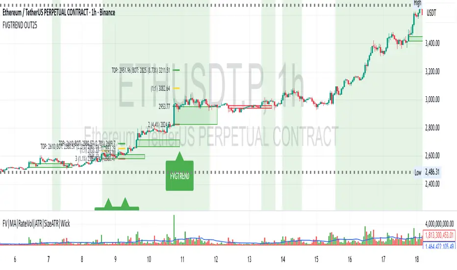 This indicator plots entry signals when a Fair Value Gap occurs and the price moves to the middle of the FVG, and then shows a continuity signal (123).