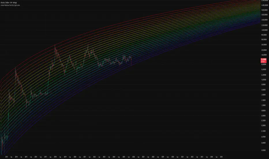 This script adapts the popular Bitcoin Rainbow chart to Litecoin to visualize Litecoin's long-term price trend on a logarithmic scale.
