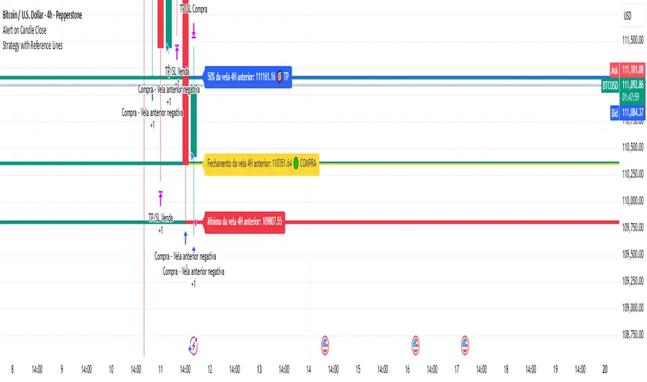 🔹 Reference Lines: High, low, close, and midpoint (50%) of the previous candle