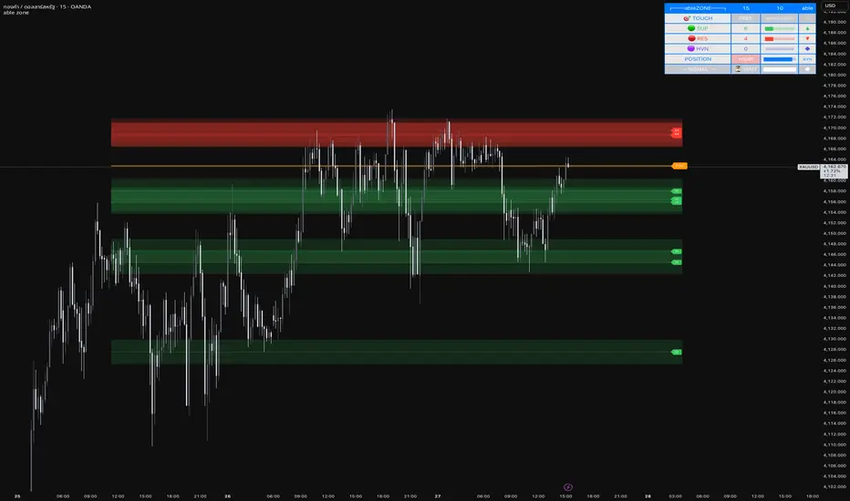 **able zone** is an advanced Support & Resistance zone detection indicator optimized for **15-minute timeframe trading**. It combines Price Action, Volume Profile, and intelligent zone analysis to identify high-probability trading areas with precise entry and exit points.