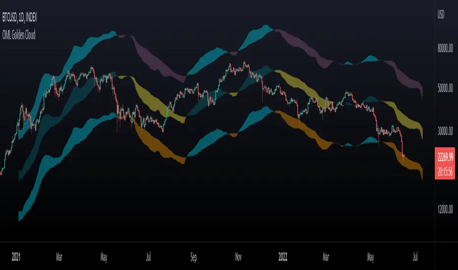 This indicator is a modification of the popular Ichimoku indicator, build high/low channels using the Golden Ratio, Volume-weighted average price allows smoother components.