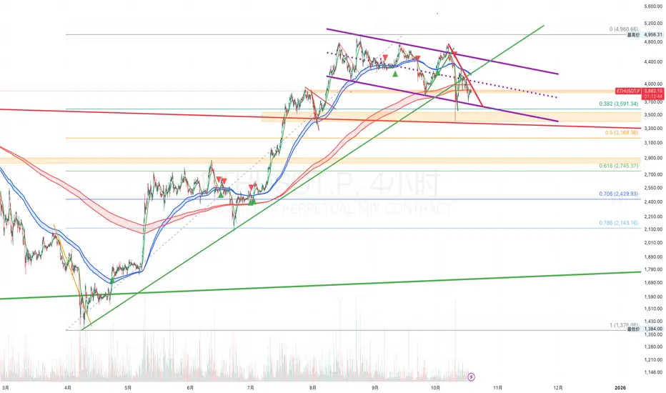 Channel B: 576-period and 676-period EMAs (red) establishing long-term trend context