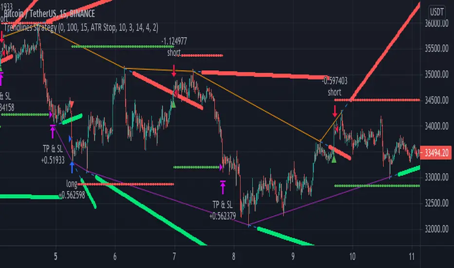 Note: The blue dashed lines use pine-scripts drawing functions. As such, there is a limit to how many of these can be placed on a chart. When the limit is reached, the oldest line will be removed so the newest can be drawn. This means that if you detect enough trends and scroll back in time, the blue dashed lines will disappear at some point!"