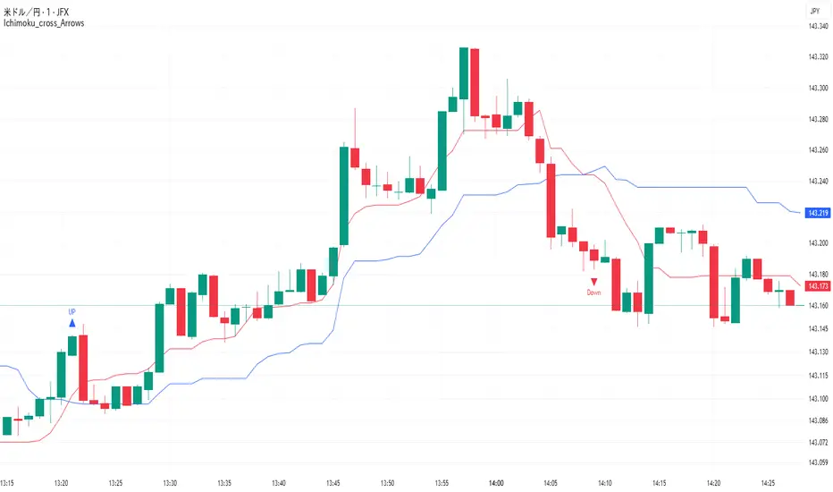 一目均衡表の転換線と基準線のクロスで矢印が出ます。