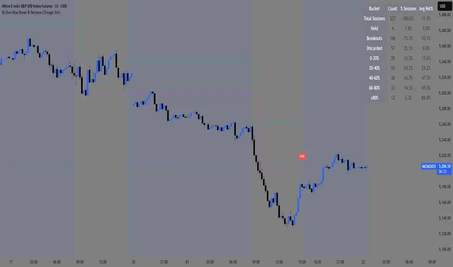 IB One‑Way Break & Retrace (Chicago 5m)