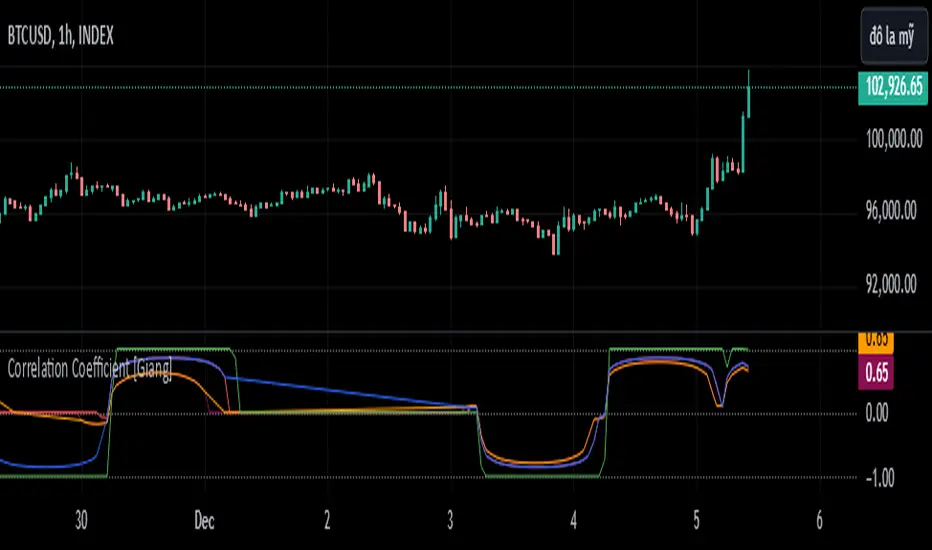 The "Correlation Coefficient" indicator is a powerful tool that helps traders analyze the relationship between Bitcoin and major financial indices. The ability to customize asset symbols for comparison makes the indicator flexible and suitable for various trading strategies. When used correctly, this indicator not only provides insights into market sentiment but also supports the development of intelligent trading strategies and optimized profits.