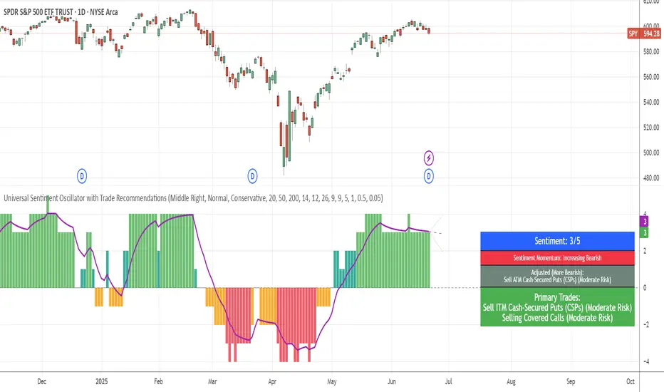 Pinpoint the Execution: Move to a lower timeframe (e.g., 15-Minute). Use the Adjusted Trade Suggestion and Sentiment Momentum to find a precise entry as momentum begins to shift back in the direction of the primary trend. You can set alerts on the oscillator's zero-line for early warnings of a sentiment shift.