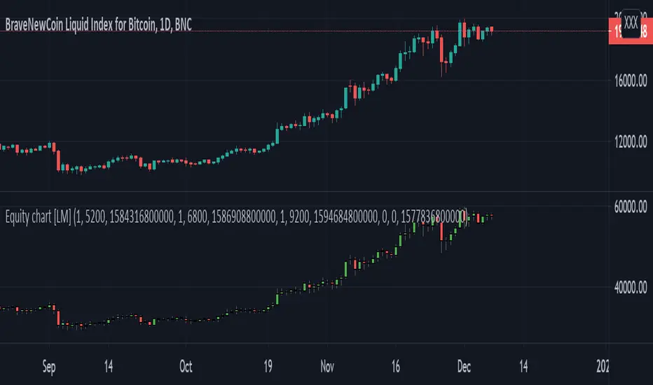 I have created draft version of chart where you can put your position amount and position price and position date for each entry and it will chart your equity as candle stick chart. There are currently possible to include 4 positions but you can add as many you like by modyfing the code.