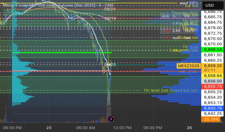 Anchors your intraday view to the New York RTH open (09:30 ET) and draws the core decision levels for U.S. stocks and CME equity-index futures. In Futures mode, it respects the CME RTH close at 16:15 ET (vs. 16:00 ET for cash equities).