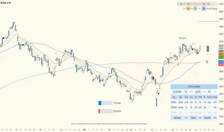 The Portfolio Dashboard by DTR is a sophisticated yet user-friendly Pine Script indicator for TradingView, designed to empower traders with a comprehensive tool for managing and monitoring investment portfolios. Supporting up to 10 stocks, it delivers real-time performance metrics, risk analysis, and market insights in an intuitive, customizable dashboard—perfect for traders of all experience levels.