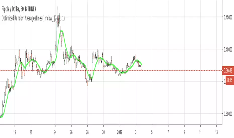 This is a moving average with a customizable random kernel. You can shape your kernel by selecting your parameters in the settings window. This is not something that is immediately ready to mess with by just applying it on the chart, it is very useful for people who are researching indicators and developing new tools. To see the shape of your kernel you can plug it into google or wolfram. This indicator and the related ones are rather technical in nature, so feel free to comment any questions you may have and to see if anyone has asked your question.