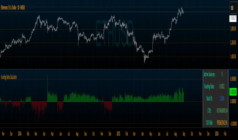 The indicator fetches data from multiple popular exchanges (e.g., Binance, Bybit, OKX, MEXC, Bitget, BitMEX). You can select which exchanges to include.