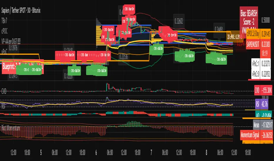 TBv7 Pro is the advanced release of the Trading Blueprint framework — engineered for institutional-style intraday analysis that fuses VWAP location, CVD orderflow, composite profile bias, and momentum curvature into one cohesive system.