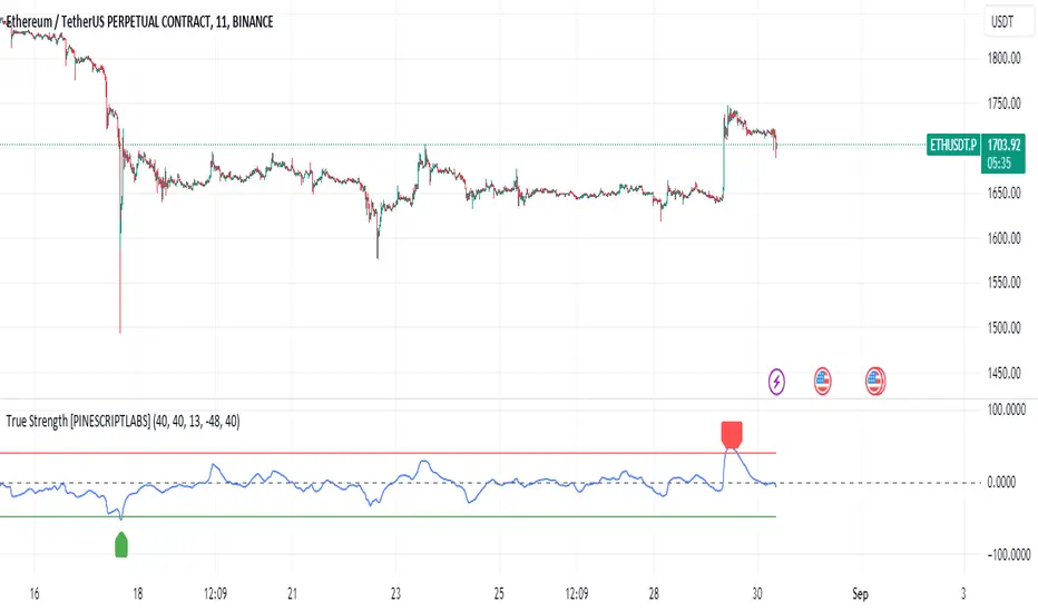 Este indicador es una implementación del "True Strength Index" (TSI) desarrollada por PINE_LABS para la plataforma de trading de Pine Script en TradingView. El True Strength Index es un indicador técnico que se utiliza para medir la fuerza y la dirección de una tendencia en un activo financiero.