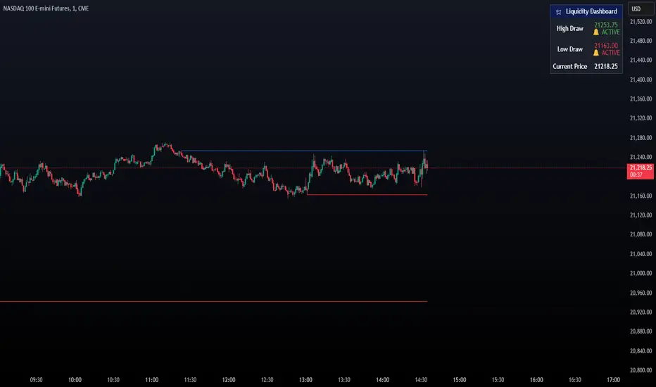 • Active Alerts: Proximity warnings when price approaches liquidity zones