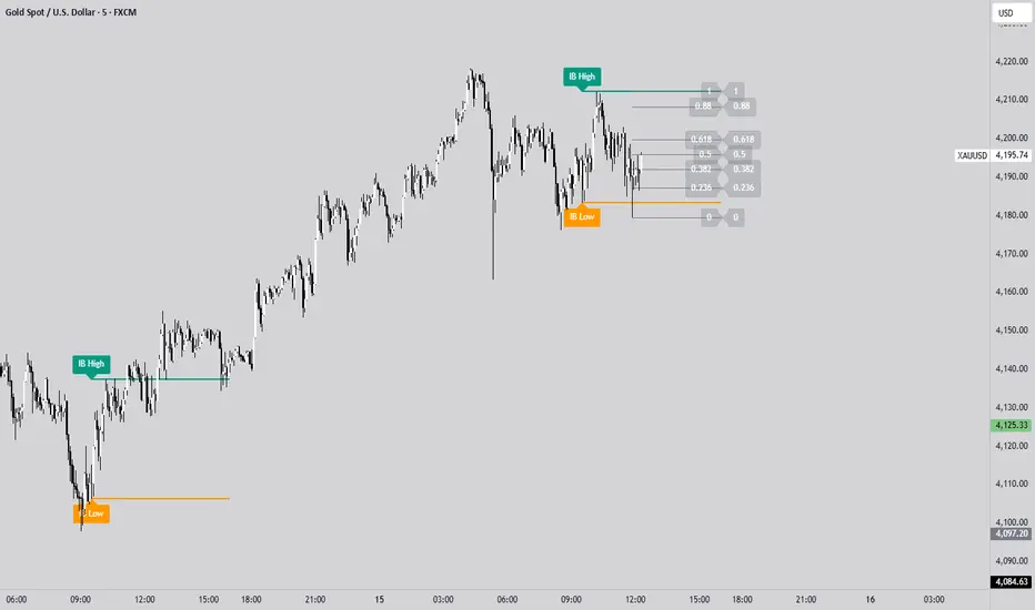Ideal for traders who monitor Initial Balance breaks, range expansions, and Fibonacci reaction levels throughout the trading session.