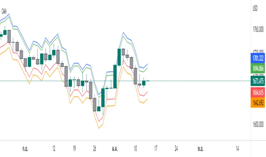- Average wick + average body above(high - open) is calculated from the upper wick and upper body wick length of the rising candle. take Average (AVG) and standard deviation (STDEV). plot on the chart at the current bar using (open price) + (average + 2*STDEV)