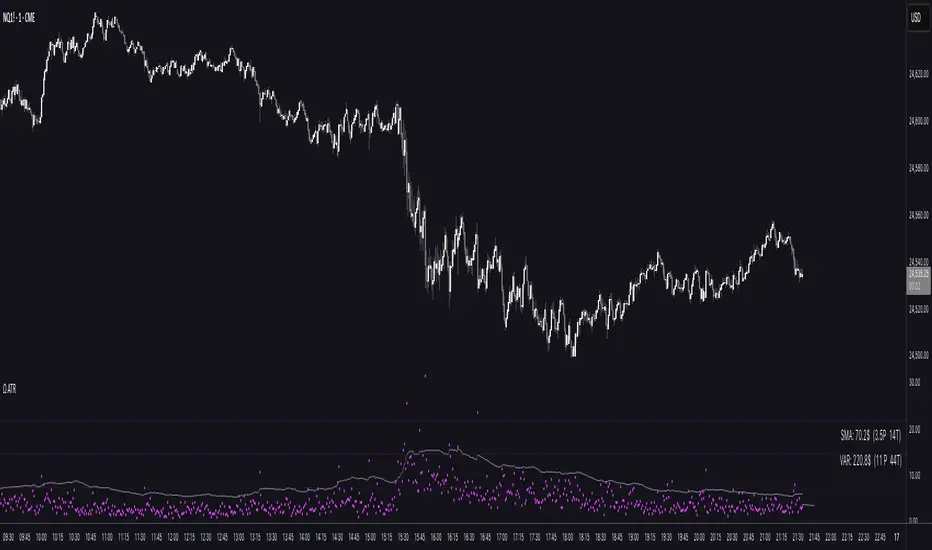 Monetary Value Translation – the indicator converts volatility into points, ticks, and dollar values (based on the instrument’s point value). This allows futures traders and high-value instruments users to immediately see how much volatility is “worth” in cash terms.