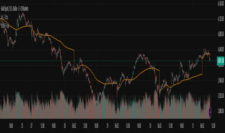 Display Debug: Raw VWAP Value: When enabled, it plots the raw, unfiltered VWAP calculation for all days on the chart, helping to verify the core logic.