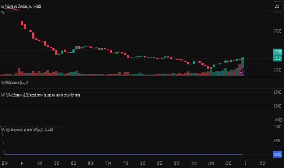 indicator("MC² Tight Compression Screener v1.0", overlay=false)