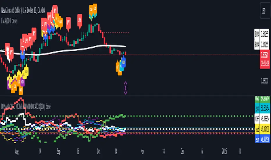 Welcome to my script, an indicator helping you to quickly see the performance of USD in constant daily comparison to other currencies.