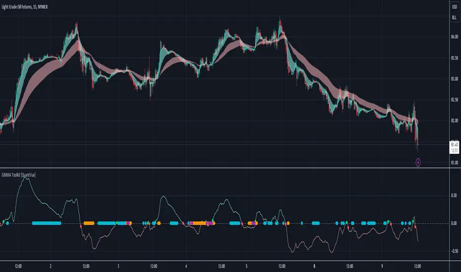The GMMA Toolkit is designed to leverage the principles of the Guppy Multiple Moving Average (GMMA). This indicator is equipped with multiple features to help traders identify trends, reversals, and periods of market compression.