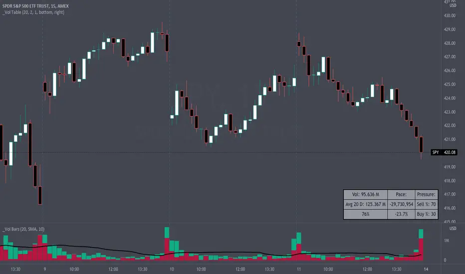Have you ever wanted to know if a particular tickers volume is above or below average while still in the trading day? This indicator displays an easy-to-read table that informs the user exactly what is occurring in intraday volume. And a whole lot more!