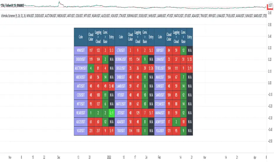 Checks the status of Ichimoku Cloud for 30 coins/stocks.