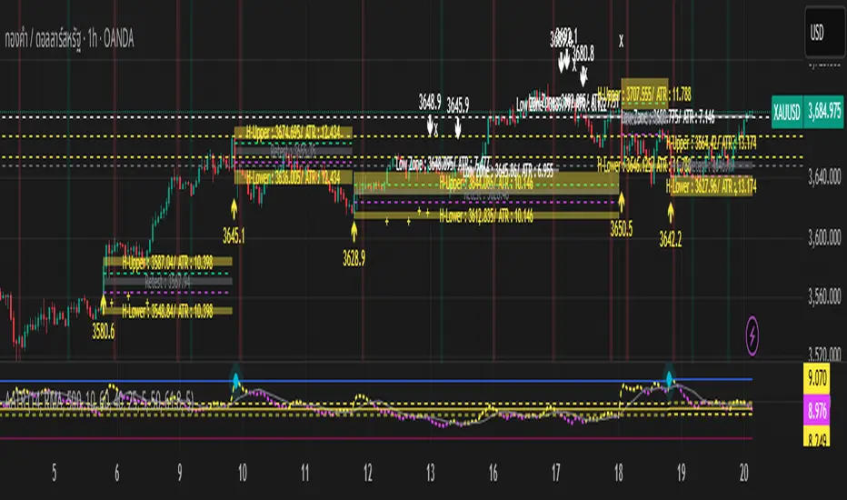 This indicator also measures the standard deviation of the ATR to determine the maximum and minimum price movement, based on another hypothesis regarding "time for a move or time for a slow down," which is plotted as a background color.