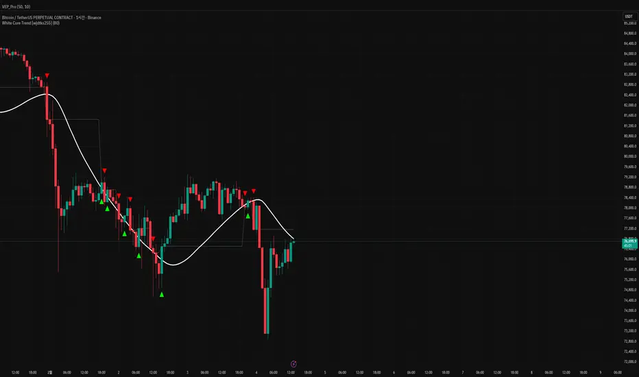 White Core Trend [wjdtks255] is a trend-following indicator designed to strip away market noise and visualize the "Core Trend" of price action. It focuses on the essential relationship between price and a dynamic baseline to provide clear trading decisions.