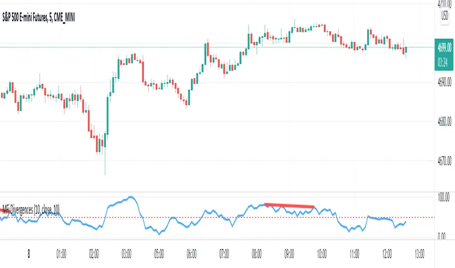 Uses TV divergence logic to plot divergences on 10 period MFI