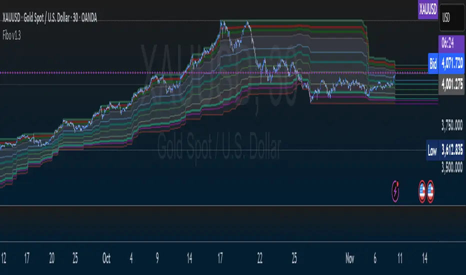 This indicator provides a comprehensive suite for Fibonacci analysis, focusing on both price and time. It is designed for technical analysts who require a highly configurable tool to identify key levels of support, resistance, and temporal market rhythm.