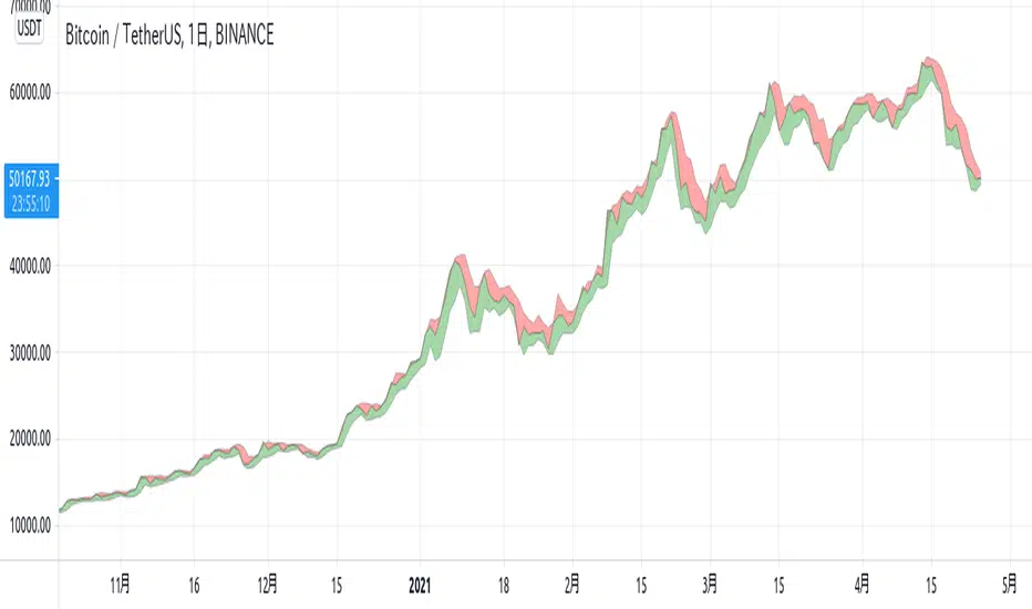 このインジケータは、バーの4本値のうち、高値の平均と安値の平均と、あなたが指定する4本値のいずれか(初期設定は引け値)を使って描画します。