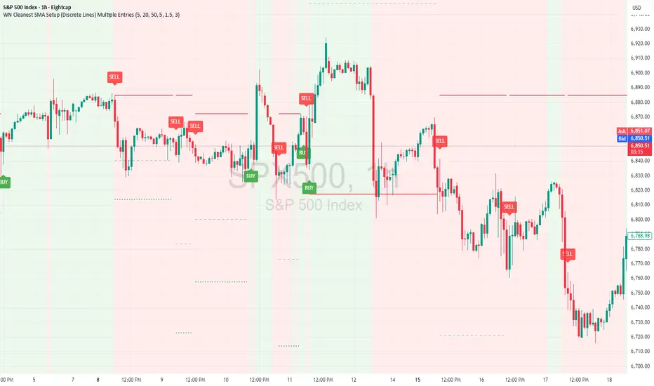 WN 5-20-50 SMA Setup (Discrete Lines = SL TP) Multiple Entries