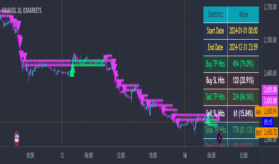 This setup provides clean trend signals and dynamic TP/SL tracking for short-term trades.