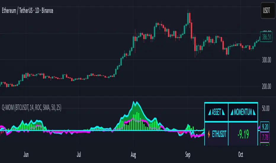 Quantum Momentum is a sophisticated technical analysis tool designed to help traders identify relative strength between assets through advanced momentum comparison. This cyberpunk-themed indicator visualizes momentum dynamics between your current trading symbol and any comparison asset of your choice, making it ideal for pairs trading, crypto correlation analysis, and multi-asset portfolio management.