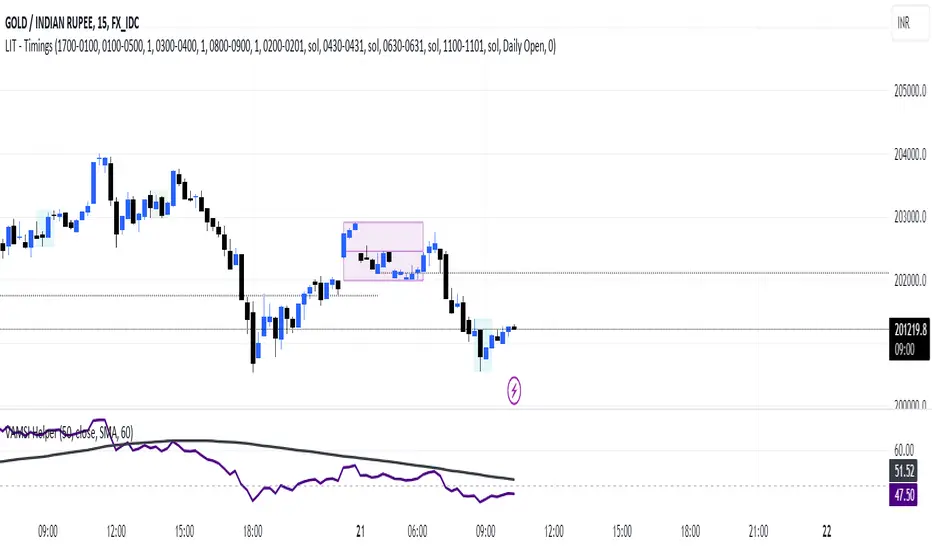 The "VAMSI Entry Helper" indicator is designed to assist traders in identifying potential entry points in the market by analyzing price equilibrium and liquidity equilibrium using a combination of Relative Strength Index (RSI) and moving averages. Here’s a detailed description of its components and functionality: