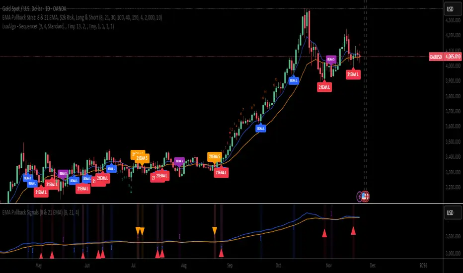 Identifying pullbacks into the 8 and 21 EMA - while trending.