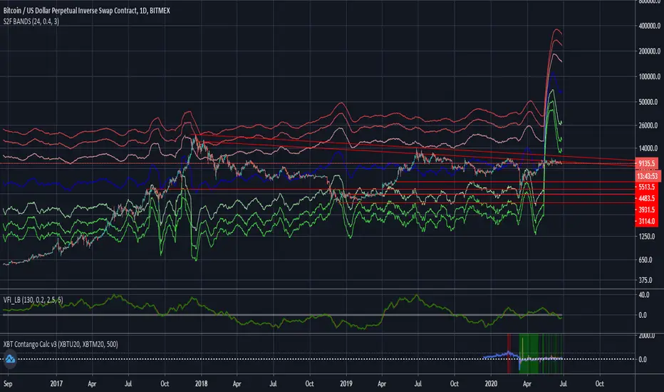 This Study takes the Stock to Flow Model for Bitcoin as presented by 100trillionUSD and smoothes it using an SMA. Then it calculates the close's standard deviation from it and displays the 2-Sigma Bands.