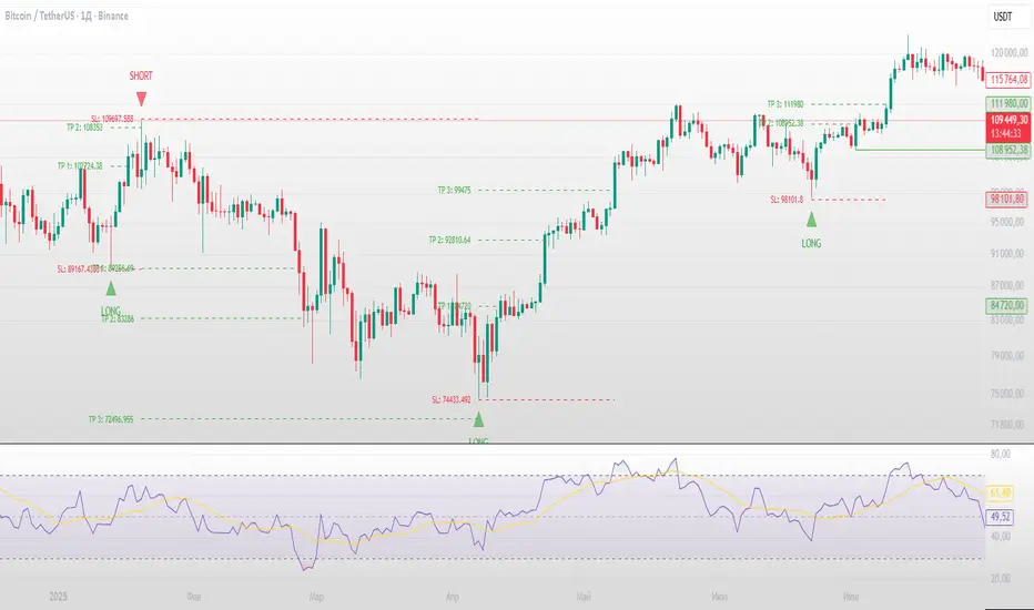 5. For TP (Take Profit): there are 3 TPthat can be adjusted to your trading strategy (Risk/Profit). For example: you always trade from 2 to 1 on the 1st Take, 3 to 1 on the second, 5 to 1 on the third: you can set all this in the indicator and all your targets will be detected by the indicator, taking into account the logic of searching for important ranges. If, for example, in your 3 to 1 range there are no important zones for TP, then the indicator writes that NaN (not found).