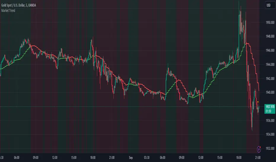 The "Market Trend" indicator is designed to provide traders with a clear visual representation of the prevailing market direction. By utilizing a higher timeframe moving average, this tool offers insights into the broader market trend. The indicator identifies: