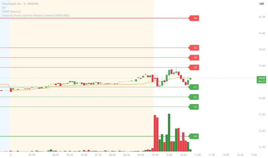 Camarilla Pivots with Pre-Market (Labeled)