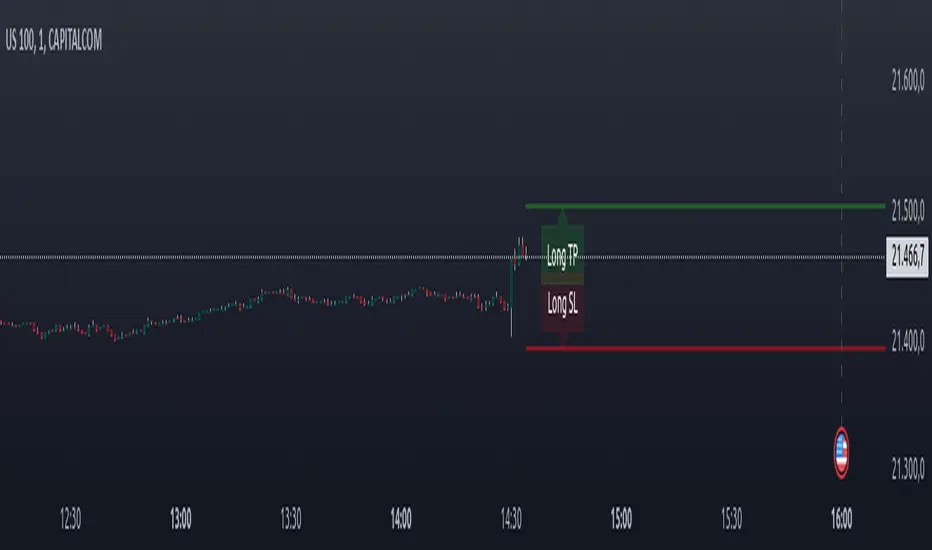 Based on a defined risk distance (e.g., in pips) and a risk-reward ratio, the script calculates the corresponding stop-loss and take-profit levels.