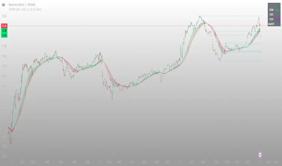 HUD: Heads-Up Display showing current Trend, Market State (Clean/Chop), Flow Status, and Active Magnets.