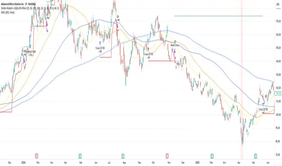 1. Trend Identification (Entry Logic) The script uses a cascade of Simple Moving Averages (SMA 25, 50, 100, 200) to identify the maturity of a trend.